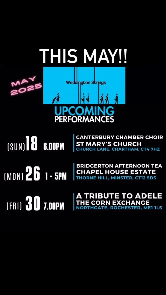 Weddington Strings give lively and dynamic string quartet performances for weddings, events & concerts throughout Kent & the South East, that always leave you wanting more.